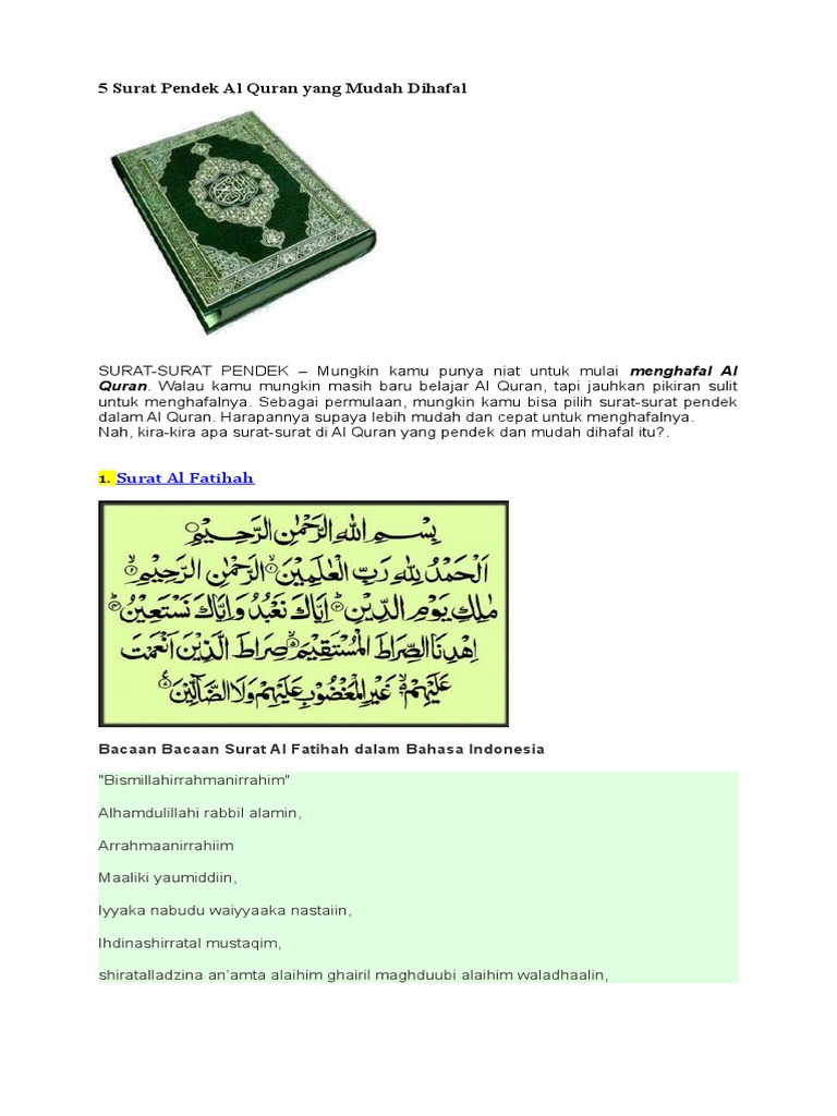 Anonim 21 maret 2012 19.43. Surah muqaddam untuk orang nak buat bacaan dalam solat, dan ayat ayat yang pendek.atau untuk mengulang kaji. Surat ini termasuk surah makkiyah. Kami tulis untuk mempermudah pembaca bagi yang belum fasih bahasa arab. Senarai surah2 pendek surah al ikhlas (112) surah al falaq (113) surah an nas (114) surah al ka_firu_n (109) surah al kawtsar (108) surah al 'asr (103) surah an nasr.